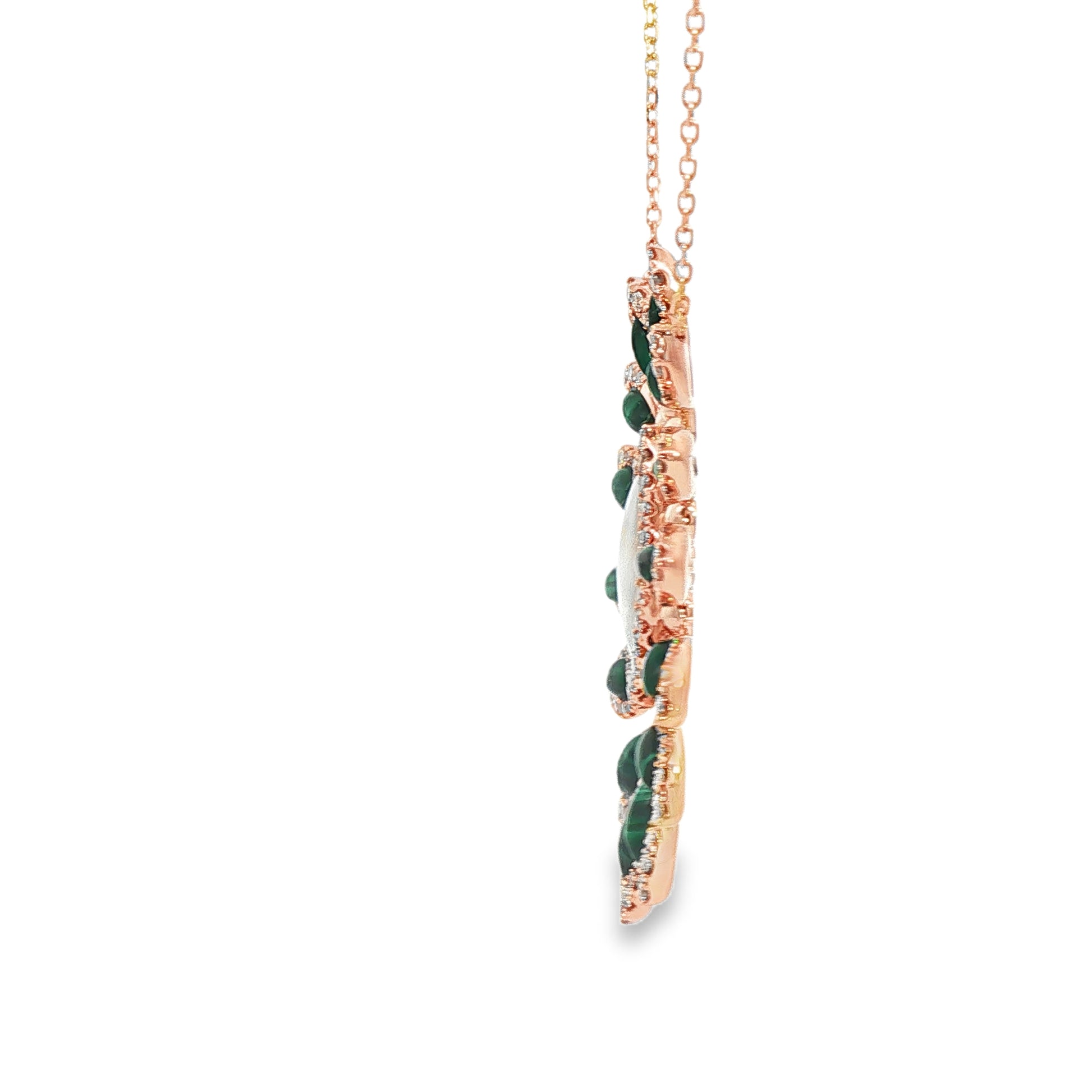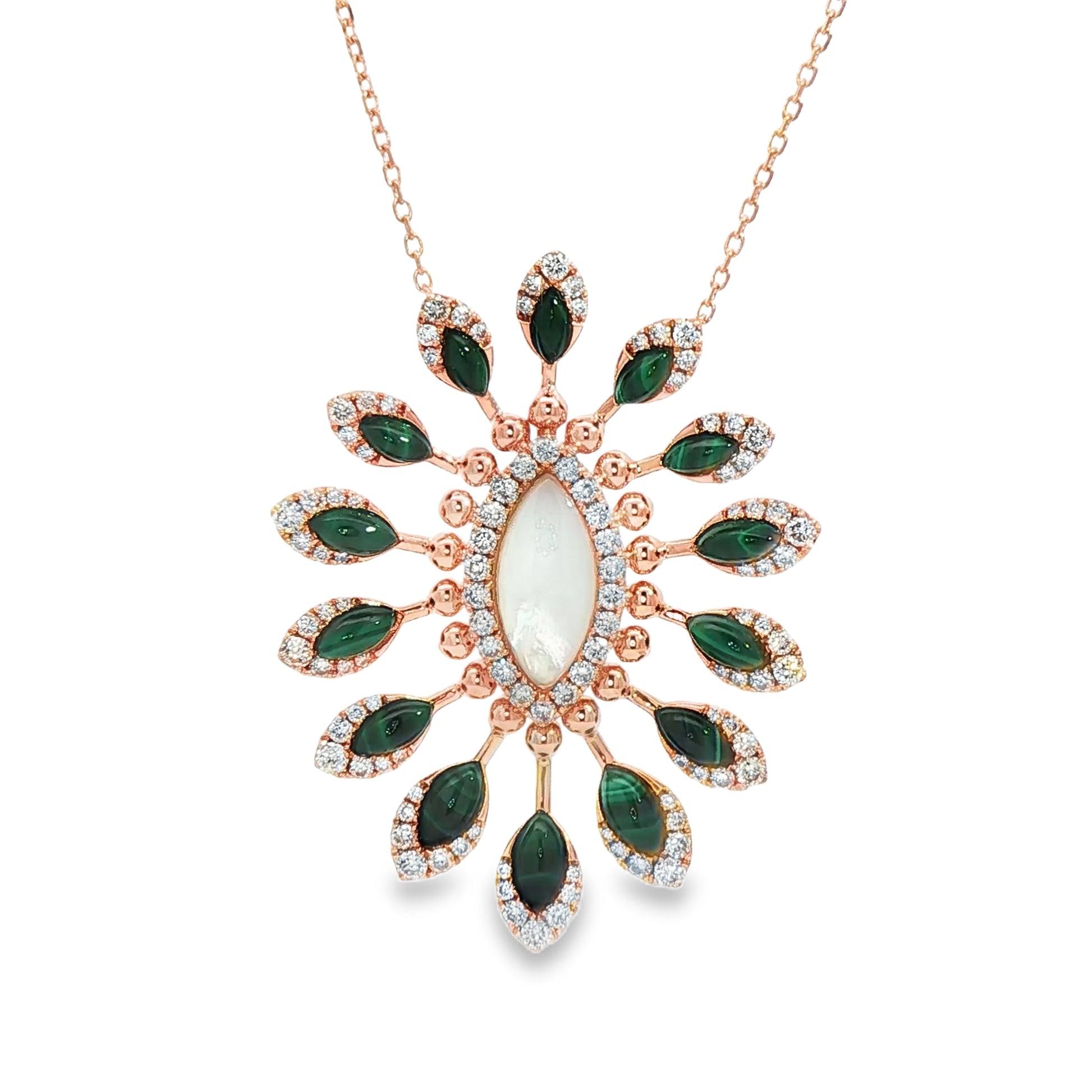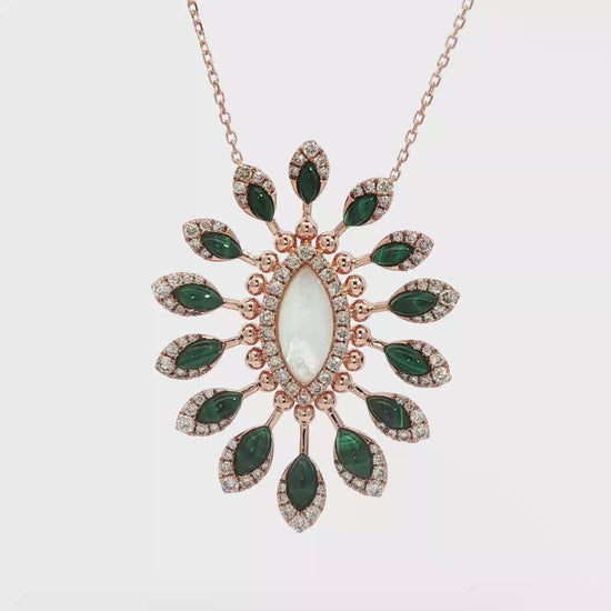 Exquisitely designed, this charm necklace showcases a stunning oval cabochon-cut malachite gemstone, celebrated for its vibrant green hues and unique banding patterns. Set in lustrous gold, this piece exudes elegance and sophistication. Its distinctive style makes it a must-have addition to any fine jewelry collection, perfect for both everyday wear and special occasions.