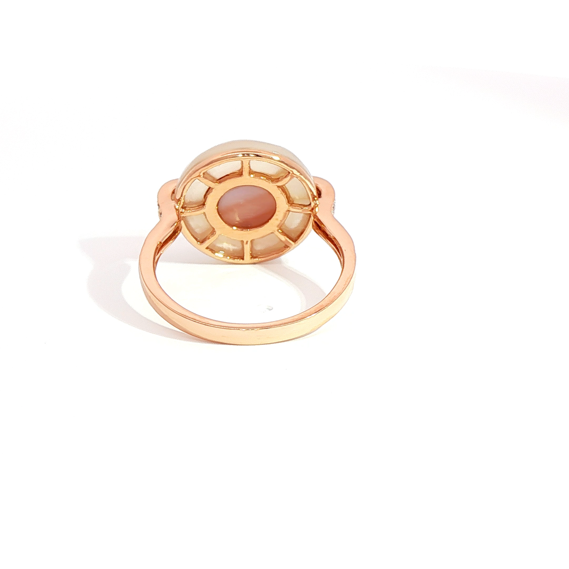 Indulge in the artistry of this exquisite gold cocktail ring. At its heart lies a mesmerizing round cabochon-cut pearl, displaying a captivating reddish-orange hue. This statement piece is a testament to refined taste and timeless elegance, perfect for adding a touch of sophistication to any ensemble.