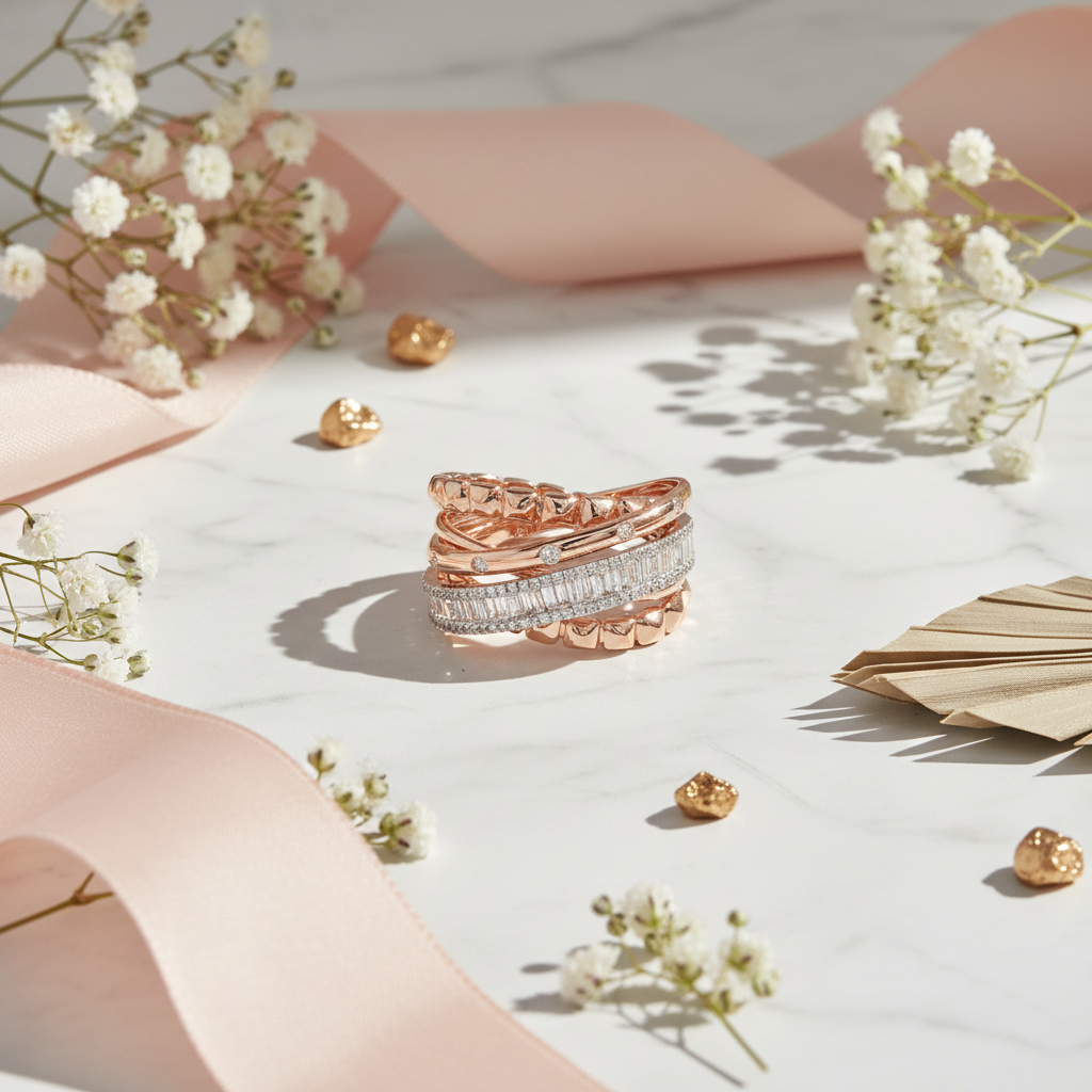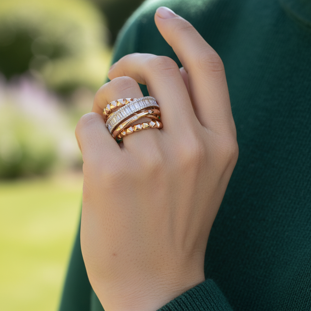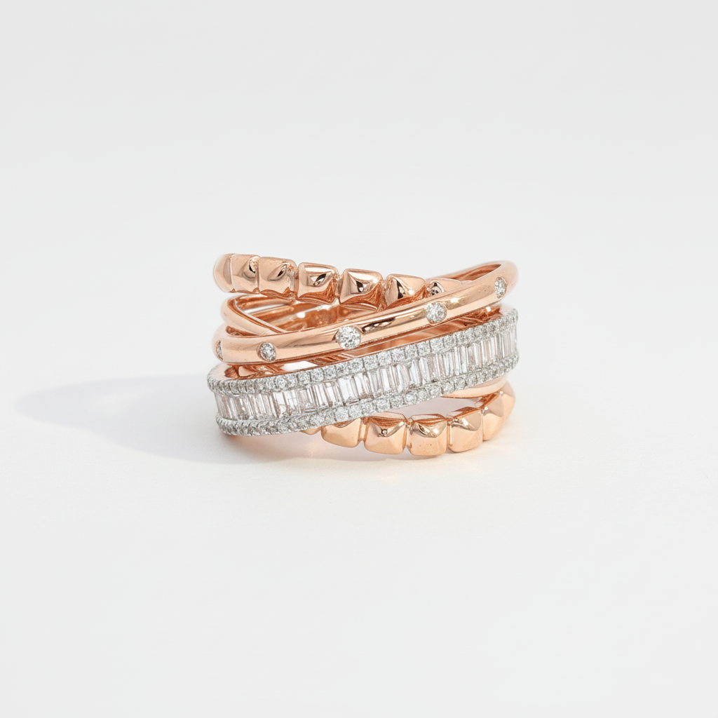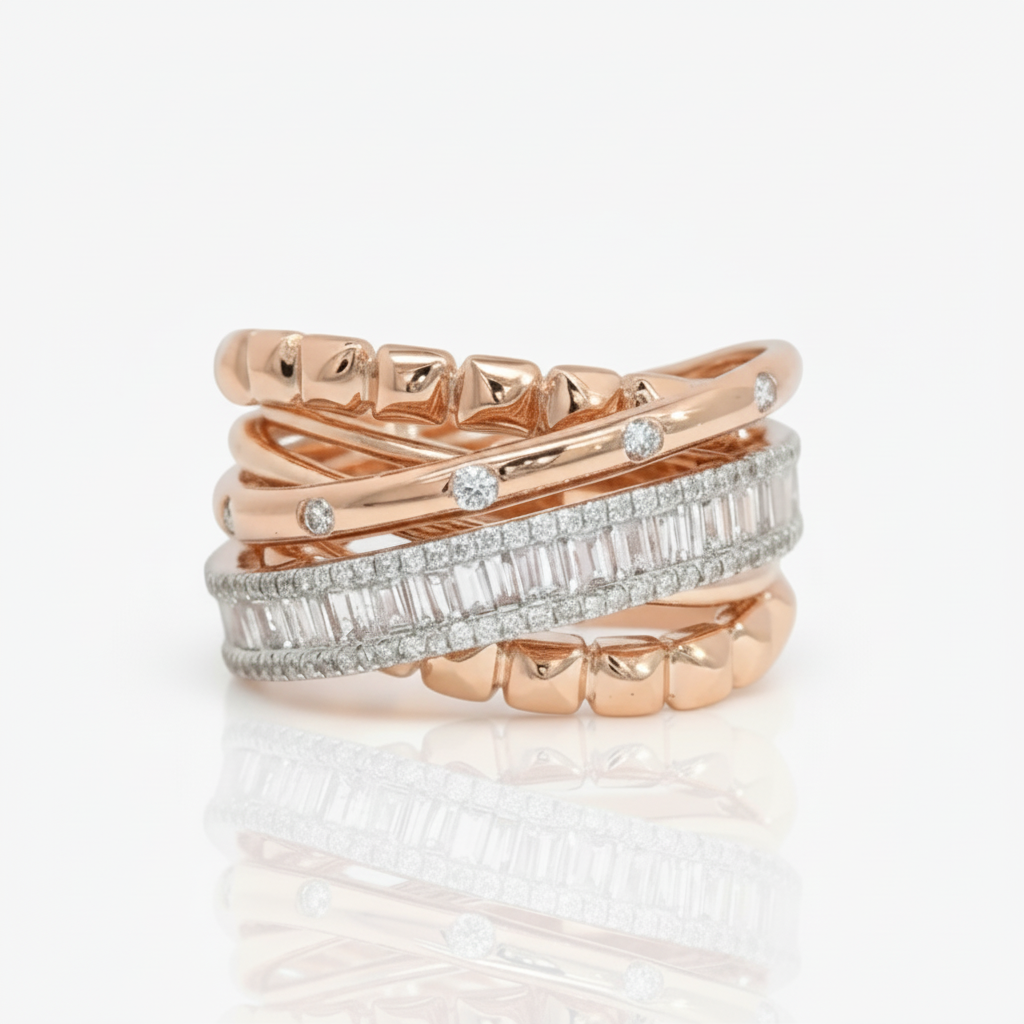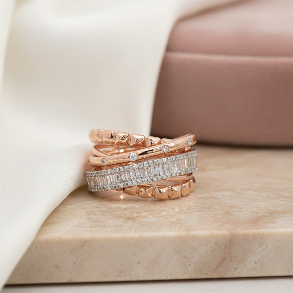 Rose Gold Stackable Rings with Baguette Cut Diamonds